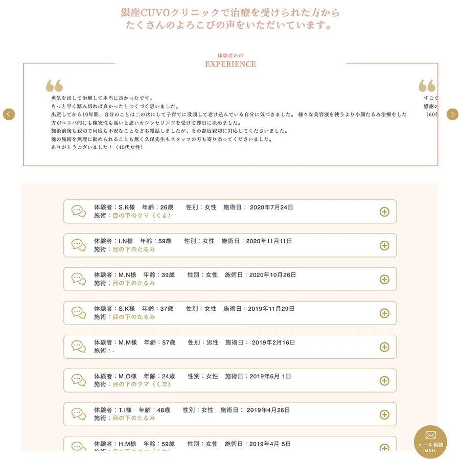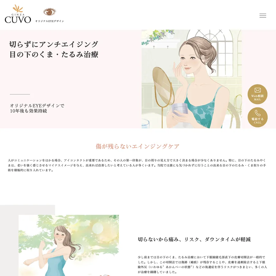 銀座CUVO様のサイトリニューアルにおいて、前任者から下層コーディング作業を引き継ぎ、WordPress化をやらせていただきました。その後に、新規でバッファルカット、LPのリニューアル、オリジナルEYEデザインサイトのワイヤーフレーム、デザイン、コーディングを担当させていただきました。