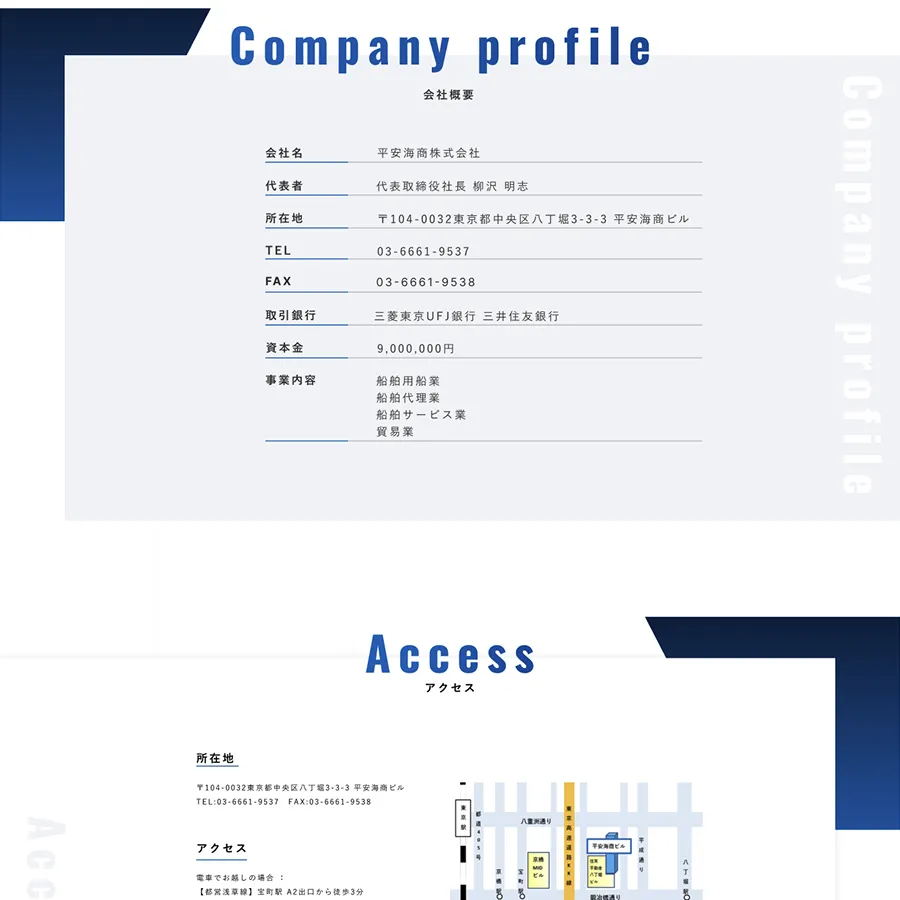 平安海商様のホームページリニューアルにおいて、前任者から引き継ぎ最終レイアウト修正とwordpress化を行いました。