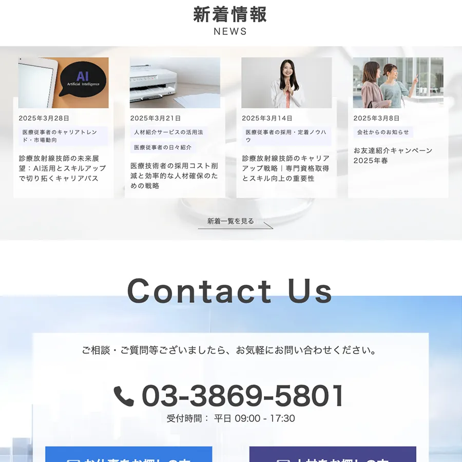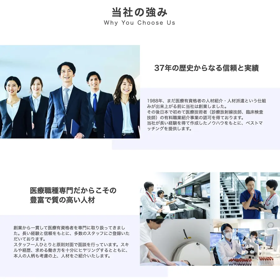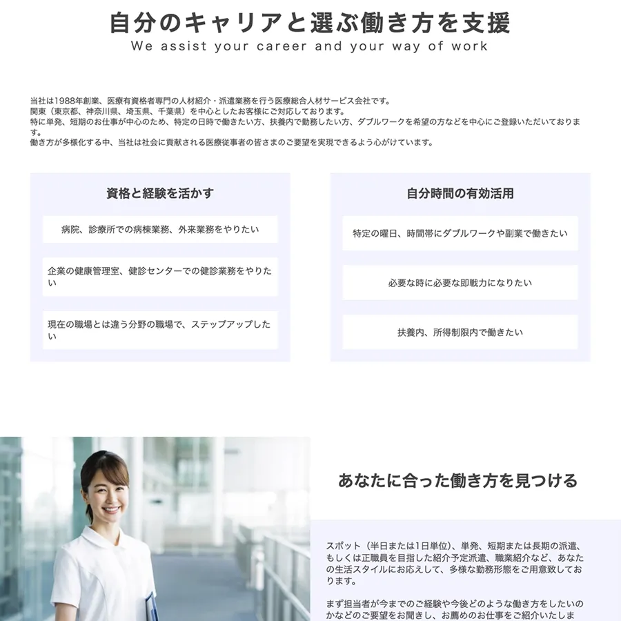 ジャパン・メディカル・ブランチ様のホームページリニューアルにおいて、ワイヤーフレームの作成からデザイン、コーディングまで一貫して行い、コラムや事例紹介など簡単に追加できるようWordPressで制作しました。