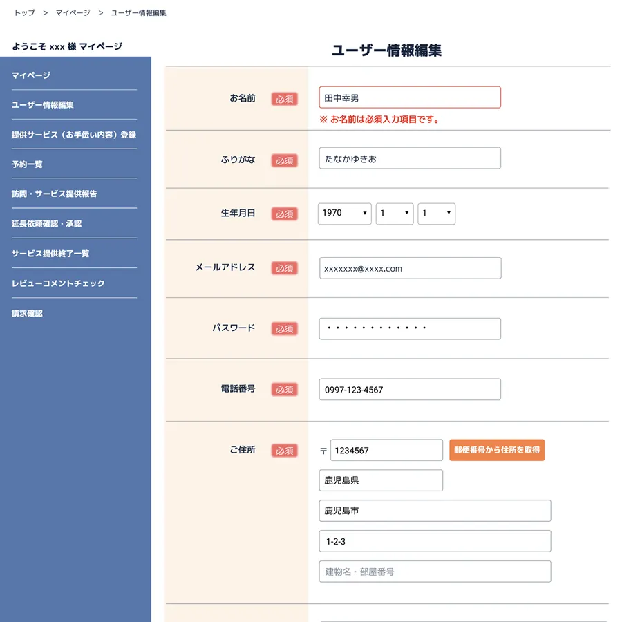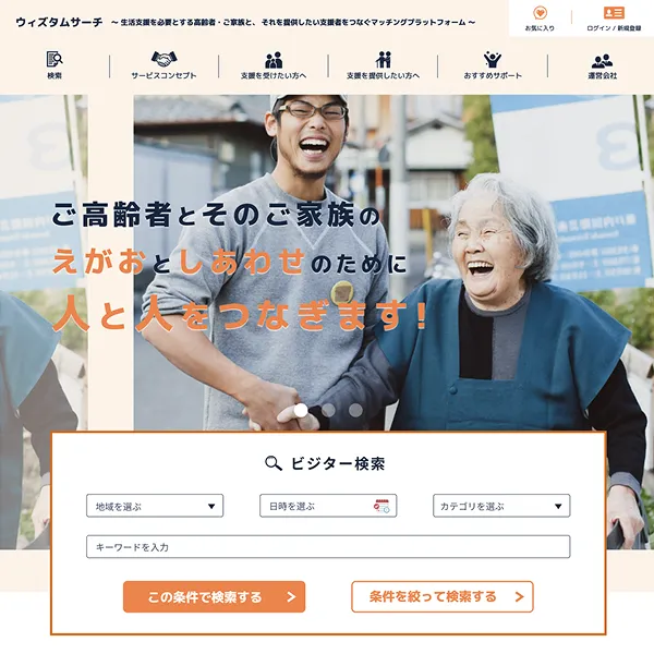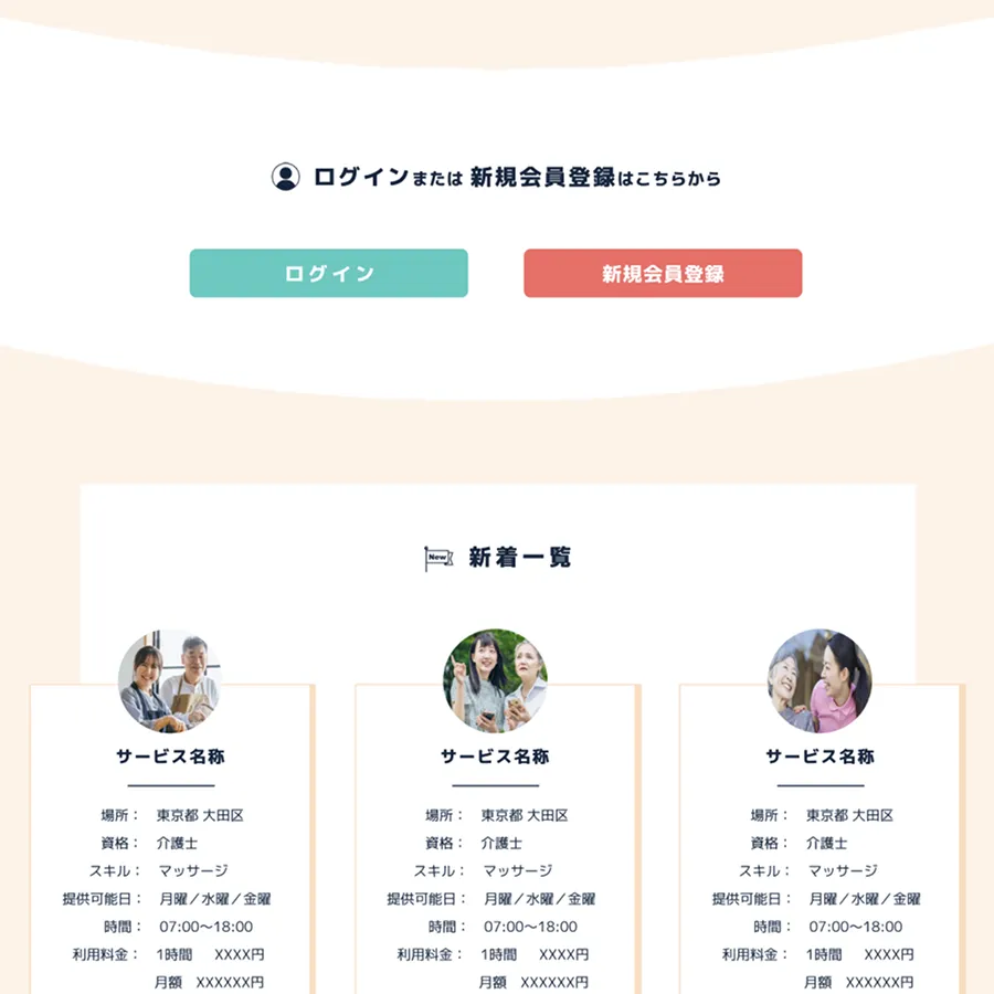 高齢者の支援を依頼したい側と提供したい側を繋げるマッチングサイト制作のワイヤーフレーム、デザイン、コーディングを担当し、バックエンドのエンジニアと連携しながらレイアウト修正を行いました。